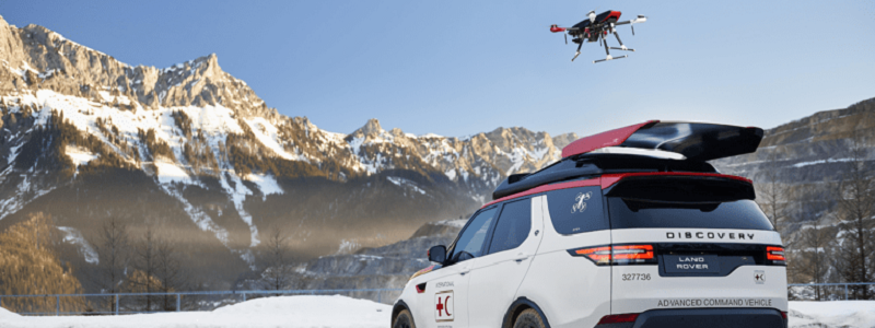 In 2017 Land Rover partnered with the Austrian Red Cross to develop a special operations vehicle with a roof mounted drone equipped with thermal imaging.